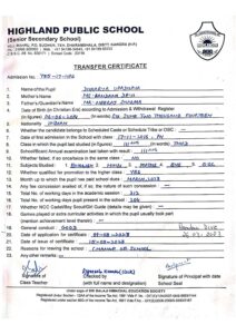 Transfer Certificate
